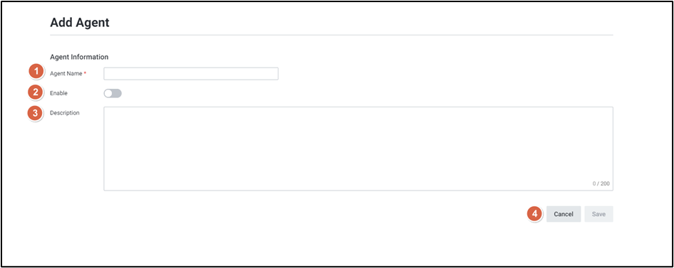 | 7 | Button | Cancel : 에이전트 추가를 취소합니다. Save : 에이전트를 저장합니다. |