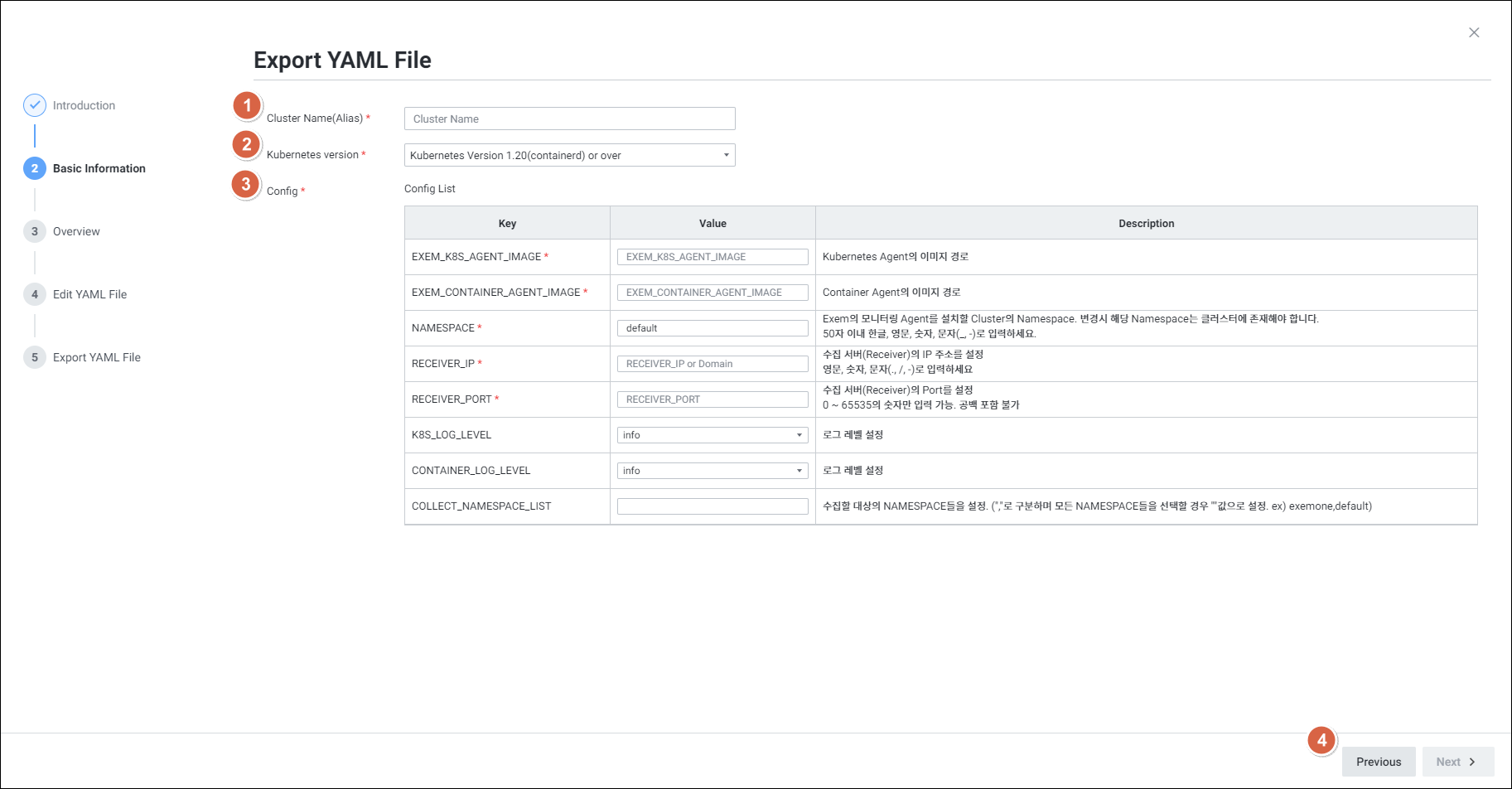 | 1 | Edit YAML File | YAML 파일을 수정하여 입력된 정보 및 옵션 값을 추가할 수 있습니다. |
