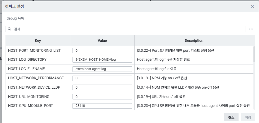 | HOST_LOG_DIRECTORY | Host agent의 log file을 저장할 경로 | ${EXEM_HOST_HOME}/log |